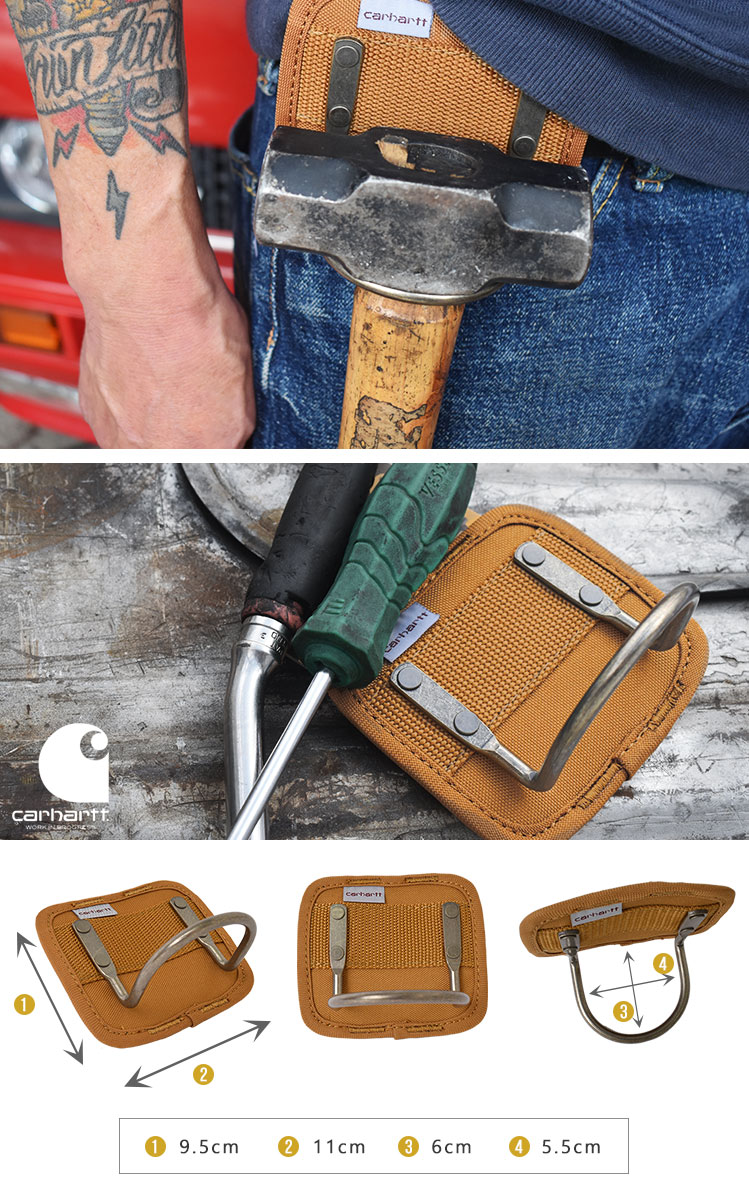 そんな頑丈な作りとシンプルなデザインで若者を中心に今も人気を得ている カーハートからあらゆる作業の際にあると役立つ ハンマーホルダーが登場。
