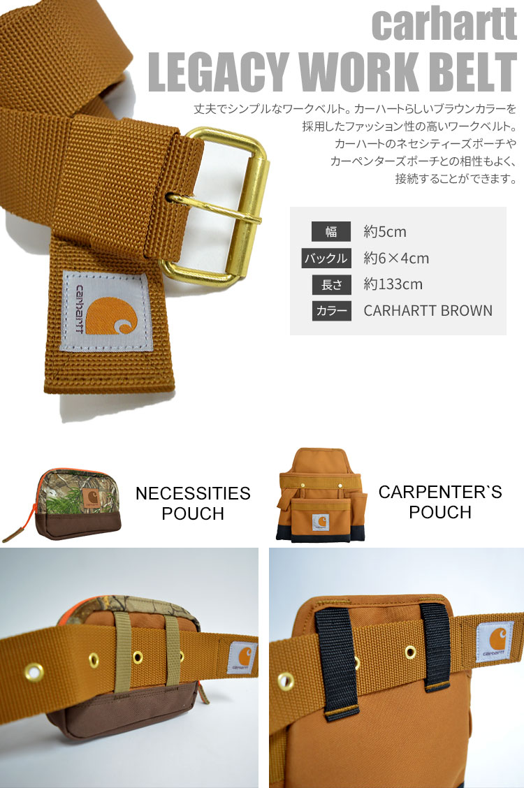 ベルト carhartt カーハート ワークベルト BELT メンズ レディース バックル 大きいサイズ 大きい DIY 日曜大工 道具 工具 作業着 丈夫 ポーチ ストリート 107801 ブラウン アメカジ カジュアル 男性用 調節可能 レインディフェンダー かっこいい おしゃれ 人気