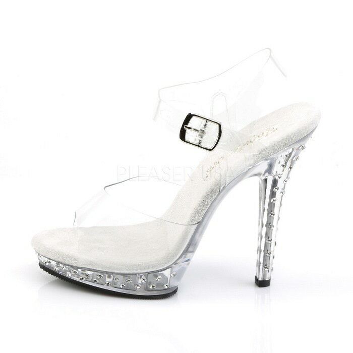 【取寄】 送料無料 きらきらラインストーン付きヒール&ソール ベルト付き 薄厚底サンダル 12.5cmピンヒール クリア Pleaserプリーザー 大きいサイズ 靴 イベント 仮装 女装 男装 パーティ- ハロウィン コスプレ