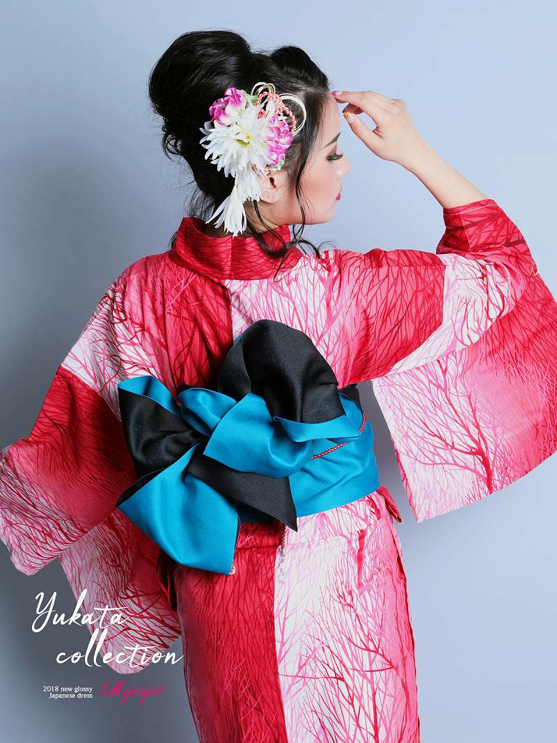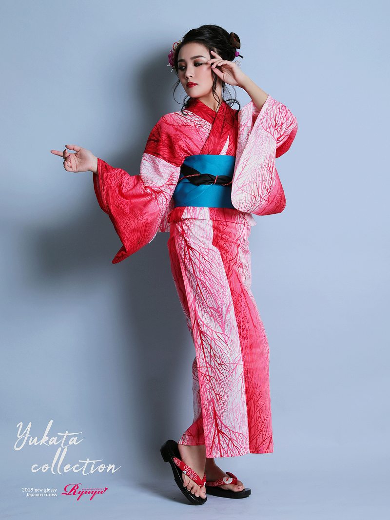 赤グラデーションに松柄デザインのキャバ浴衣は個性的で人と被らないワンランク上の古典柄レディース浴衣。